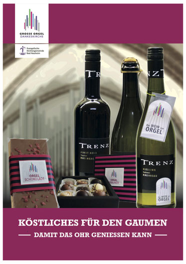 Mit der Weinhandlung Fertsch in Bad Nauheim und dem renommierten Weingut Trenz in Johannisberg bei Geisenheim hat der Orgelbaukreis Partner gewonnen, die mit kreativen Ideen unser Projekt unterstützen. Beim Kauf jeder Flasche fließt ein Teil des Preises in den Spendentopf für die neue Orgel.